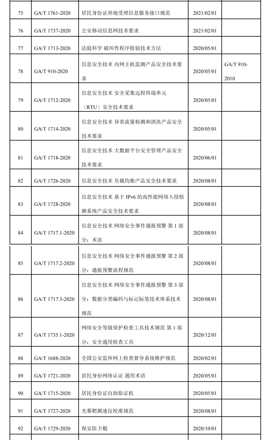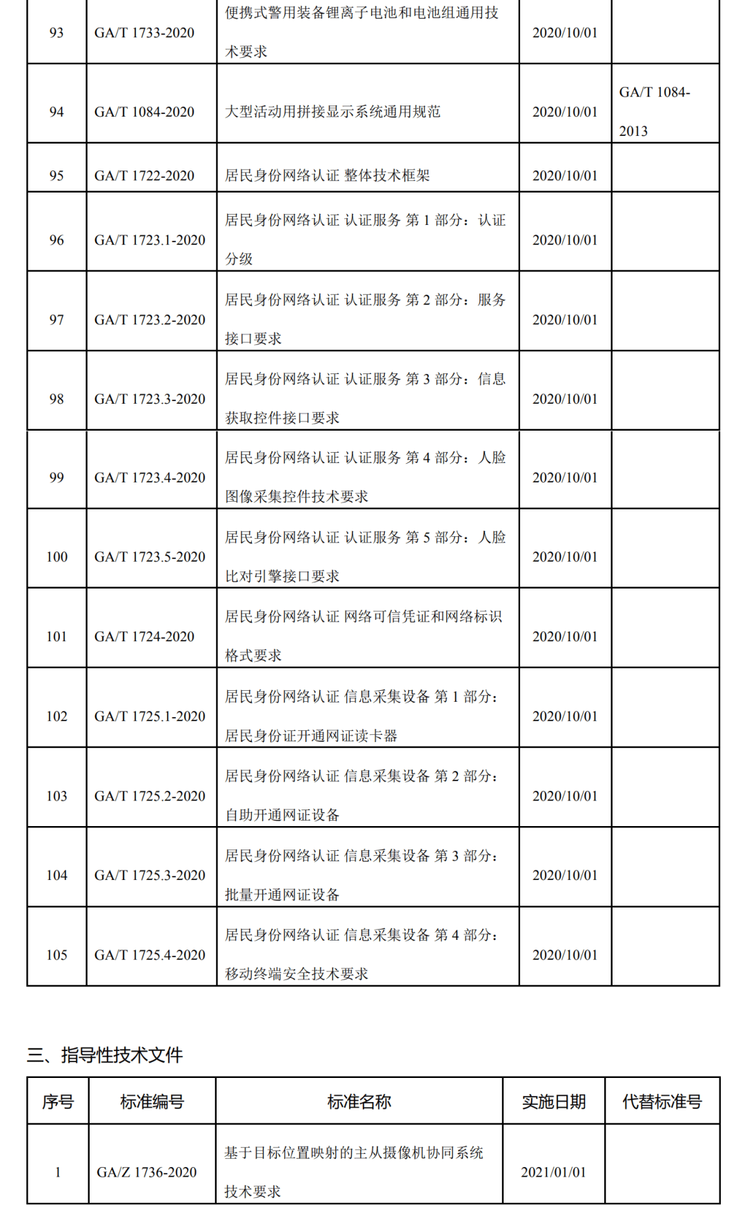 此次公布的2020年公共安全行业标准共包括11项强制性标准、105项推荐性标准与1项指导性技术文件三类。
